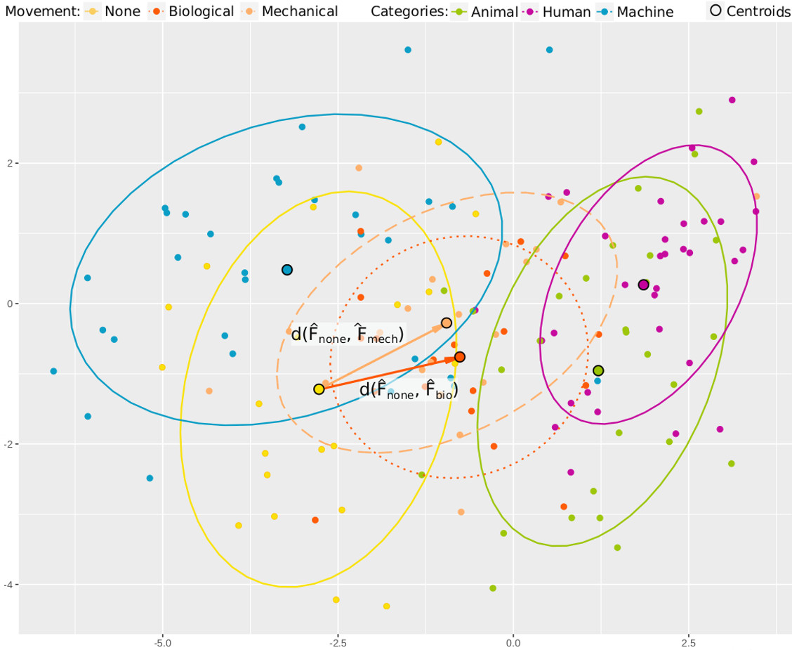 We present an empirical study of human-robot interaction. The particular focus is on movement. By means of a previously developed methodology we measure how different forms of movement have an effect on participants affinity to a non-anthropomorphic robotic object. Using an everyday object of a hairbrush technologically modified to be able to crawl with two different movement patterns, the study investigates participants interpretation of the object under three conditions: Two different behavioural patterns, biological and mechanical, and thirdly the object in halt. Applying a previously developed metric of quantitative measures allows us to investigate whether participants interpretation apparent in conceptual boundaries of entities, like those between living and non-living, change when behaviour comes into play. We provide preliminary result under the three conditions showing effects of movement to increase the social attribution to an object and variances between the biological and mechanical movement.